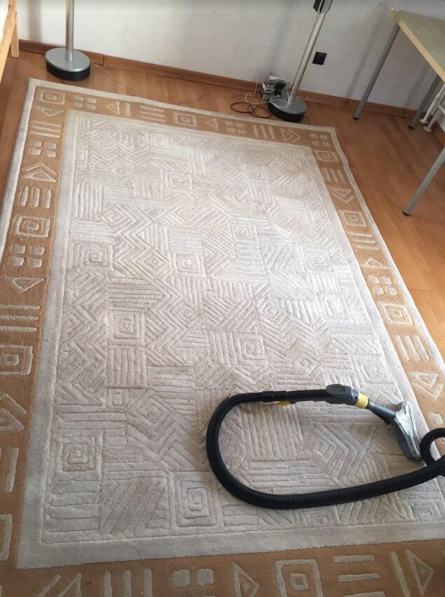 We beginnen met een grondige inspectie van de materialen. Wol vraagt om een heel andere zuurgraad dan synthetische stoffen. Daarna volgt de voorbehandeling van de looproutes en de zichtbare vlekken. Vervolgens gebruiken we onze gespecialiseerde machines die het vuil losweken en direct wegzuigen. We eindigen met een natuurlijke lanoline-behandeling voor wollen kleden, zodat de natuurlijke vetlaag van de wol hersteld wordt en het kleed weer vuilafstotend is. Het is een ambachtelijk proces in een modern jasje, midden in het hart van Haarlem.